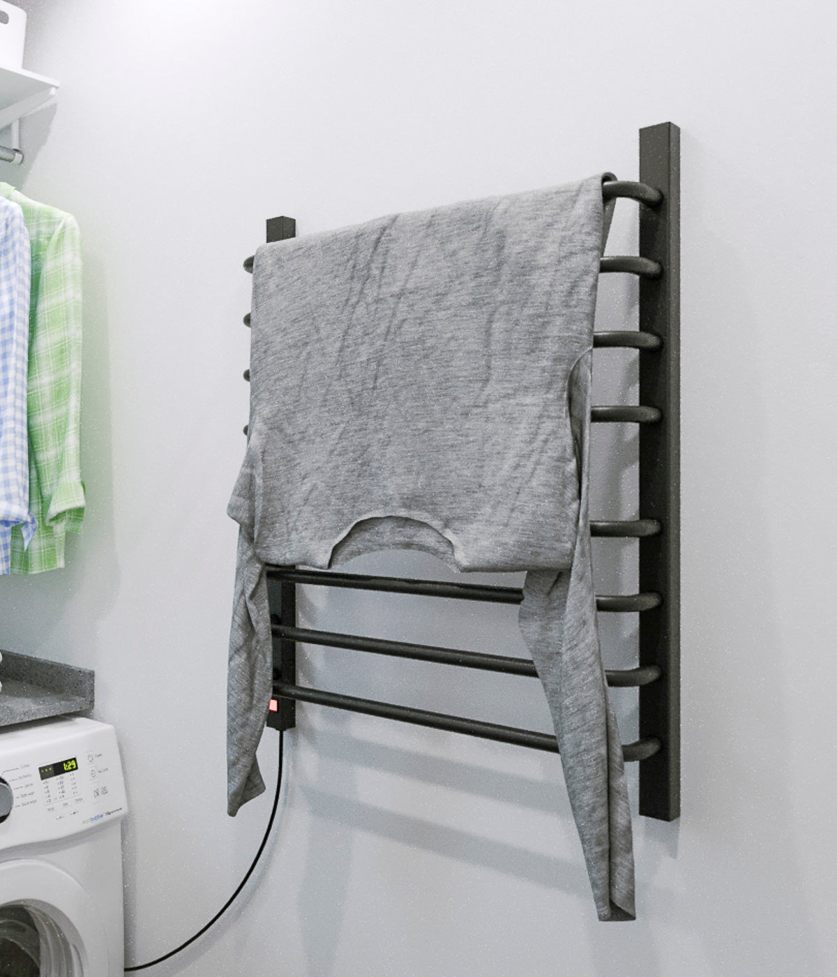 O toalheiro térmico também é muito útil para para secar e aquecer peças de roupas e roupinhas de bebê.