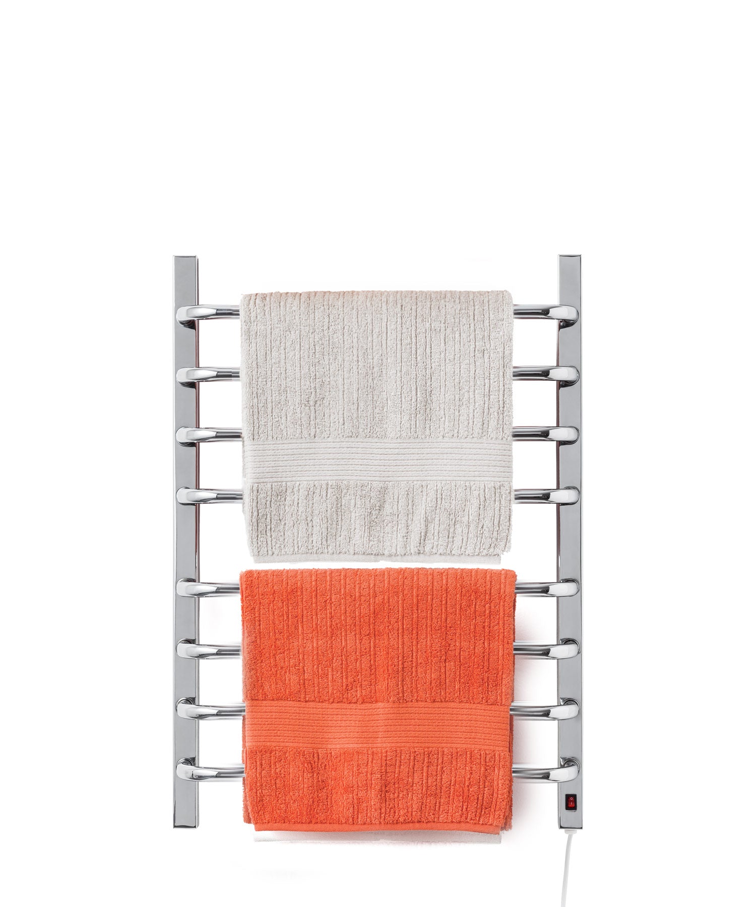 A temperatura do toalheiro chega a, no máximo, 45ºC. Sendo assim, não há risco de queimar a pele, já que a temperatura do corpo gira em torno de 36ºC.